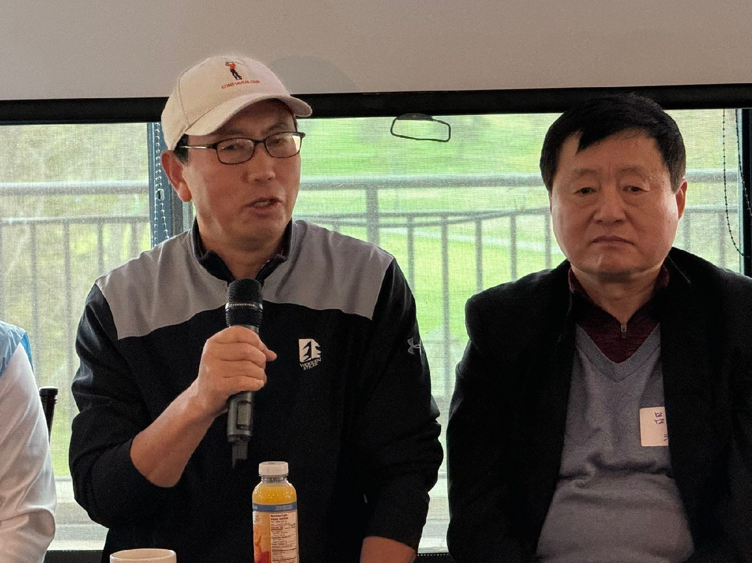 北大校友王富和清华大学校友庞海福先后介绍了创办高校杯高尔夫球赛的初衷、发展及对校友的影响力。
