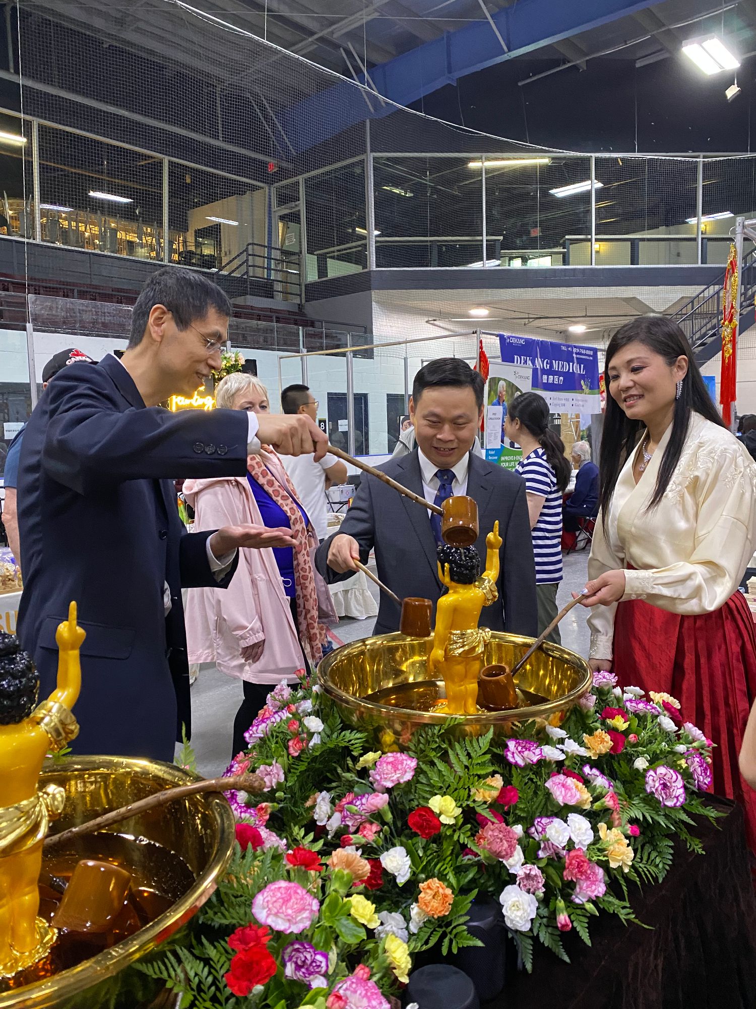 2024年5月,恰逢亚裔传统文化月,大觉文殊学院在大多伦多地区的万锦、王府井、锦绣中华、大觉中心、大瀑布、多伦多亚裔文化美食节、密西沙加多元文化节、多伦多牡丹花展,共8个地点举办了“快乐来自发现善”的主题活动,以“浴佛”仪式纪念佛陀诞辰,共吸引了5000多人次的大众参与。