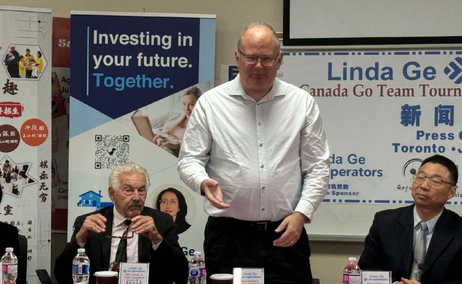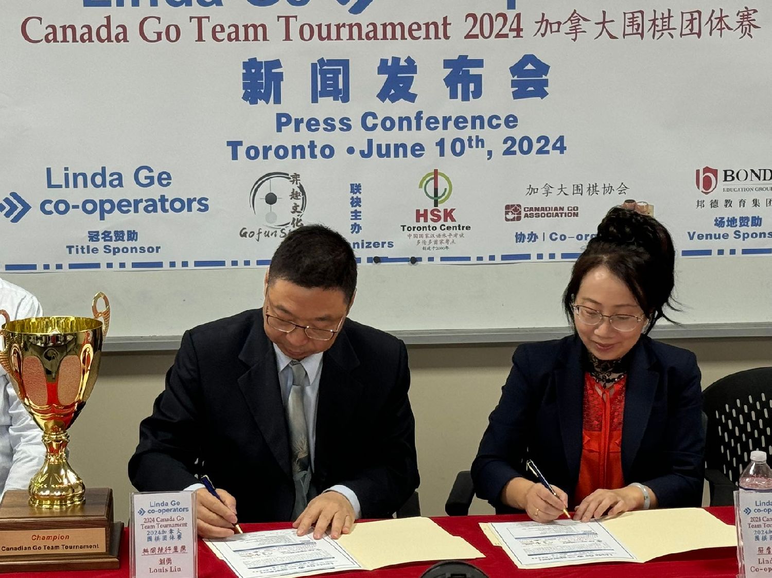 由Linda Ge Co-operators冠名赞助,多伦多弈趣围棋教室(Gofun Studio)和HSK多伦多汉语水平考试中心联合主办的“2024加拿大围棋团体赛”,于6月10日在场地赞助方邦德教育集团(Bond Education Group)所在地举行新闻发布会暨冠名赞助商签约仪式,正式比赛将于2024年7月27日在场地赞助方邦德教育集团所在地1500Birchmount Road,Toronto,Ontario举行,协办方为加拿大围棋协会(CGA)。本届比赛深受社区关注,目前各高校校友、各地区老乡正积极组队,热烈报名中。