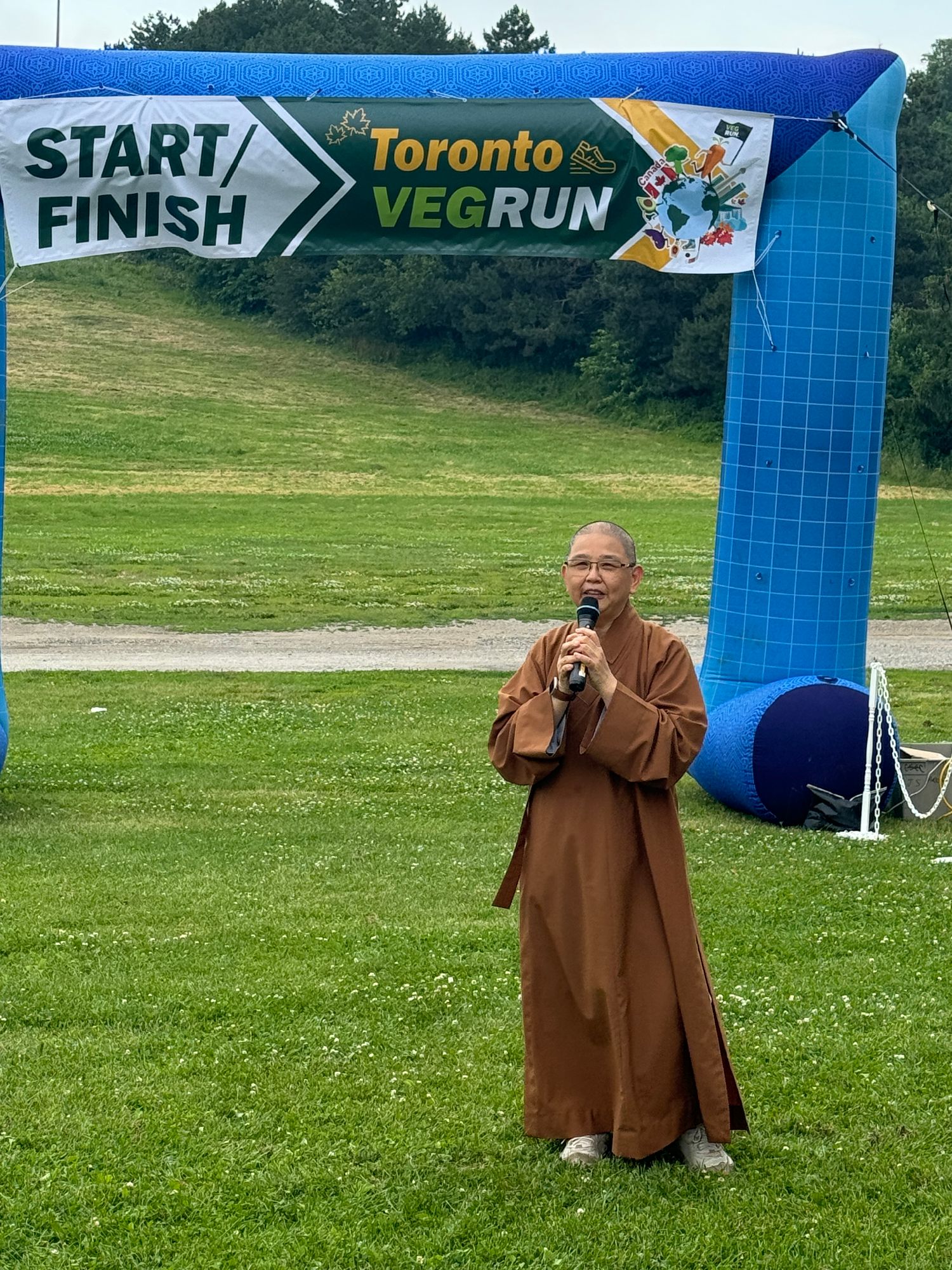 多伦多佛光山住持觉凡法师感谢大家风雨无阻前来参与,指出VEGRUN不仅是为环保,也是为鼓励蔬食,向更多人传递健康生活理念,重视环保与心保,佛光人心中的阳光为地球的可持续发展作出贡献。活动统筹、国际佛光会多伦多协会副会长曹峰岩感谢佛光人,强调佛光人复蔬公益路跑,是从「慈悲」出发,落实对地球和社区的爱与关怀。