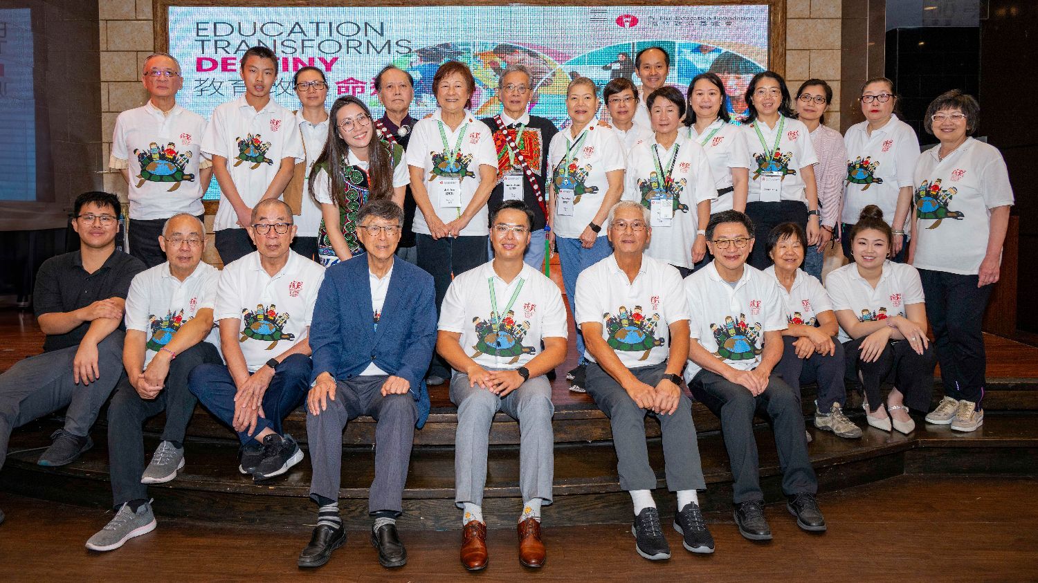 【福慧团队:(前排:杨嘉讯、伦淑玲、徐惠芳、梁德威、黄绮铢、关保卫、梁丽雯、陈锵、孔志安;后排:陈伟材、李国权、甘显扬、林换男、李秀梅、Connie Zhang、Jessica Feng、Cindy Yu、辛秉耀)(攝影:余瑞冬)】