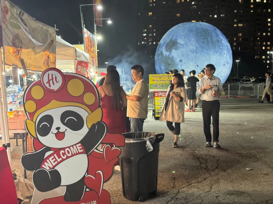 海上生明月,天涯共此时。伴随着这一美好的诗意,一轮直径十米的巨型月亮出人意料地矗立在多伦多活力广场(Woodside Square),仿佛将整个广场都笼罩在皎洁的月光中。正是在这象征团圆与和谐的明月下,为期三天的“龙年中秋美食嘉年华”正式拉开序幕。