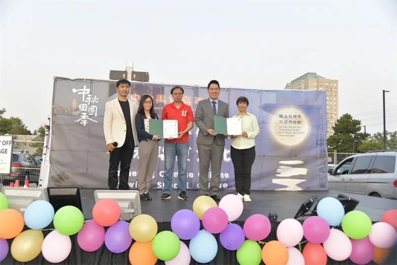 到场的加拿大三级政府官员先后登台致辞并给主办方颁发贺信,他们祝所有华人中秋快乐,并预祝三天嘉年华活动圆满成功,。多位政要及其代表也向活动表达了祝贺和中秋祝福,