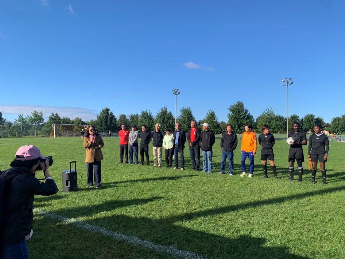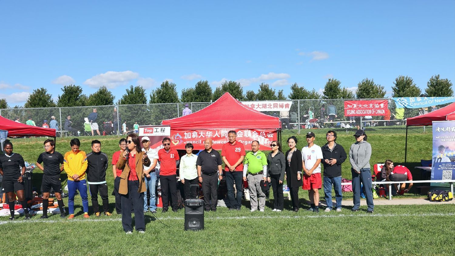 开幕式由支持方约克区齐进会会长Yan Wang主持,同乡会执行主席邢纪元、共同主席辽宁同乡会会长李栋、共同主席江西同乡会会长黄岚、冠名赞助商“清风到家冷暖”创始人Jimmy Liu,及高校杯足球赛组委会负责人贾雷鸣出席并致辞。