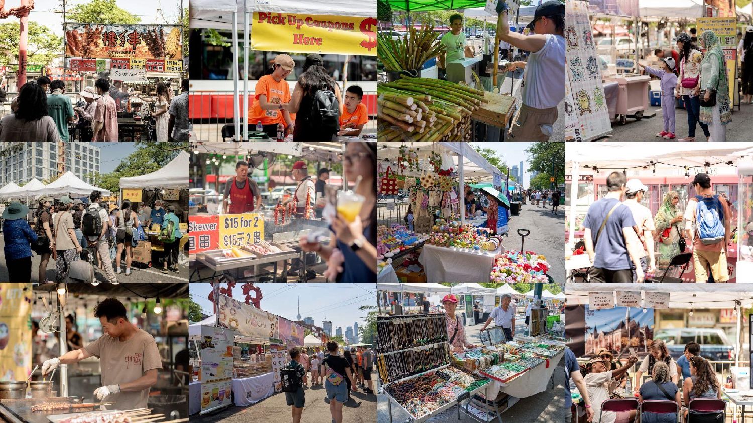 (上图为第25届多伦多中区华埠同乐日的现场掠影。街头巷尾人潮涌动,不同族裔的市民与游客在这里合影留念、体验美食、参与互动。)