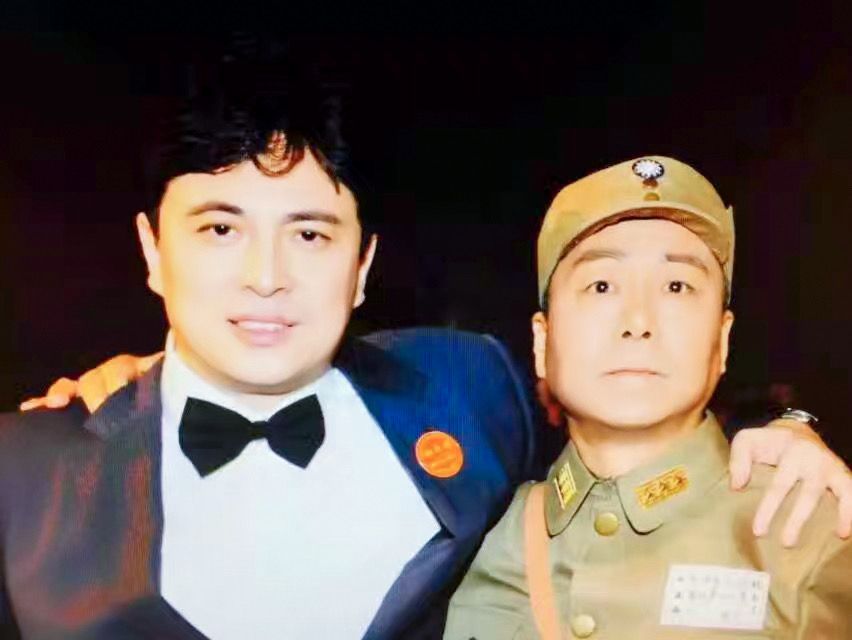 (2015年首届《和平颂》演出在现场引发观众热烈反响。演出结束后,总策划张俭与总导演张炜在后台难掩激动,情感决堤,相拥而泣。这张合影拍摄于他们擦干泪水之后,眼眶仍泛着微红,记录下那个令人难忘的瞬间。)