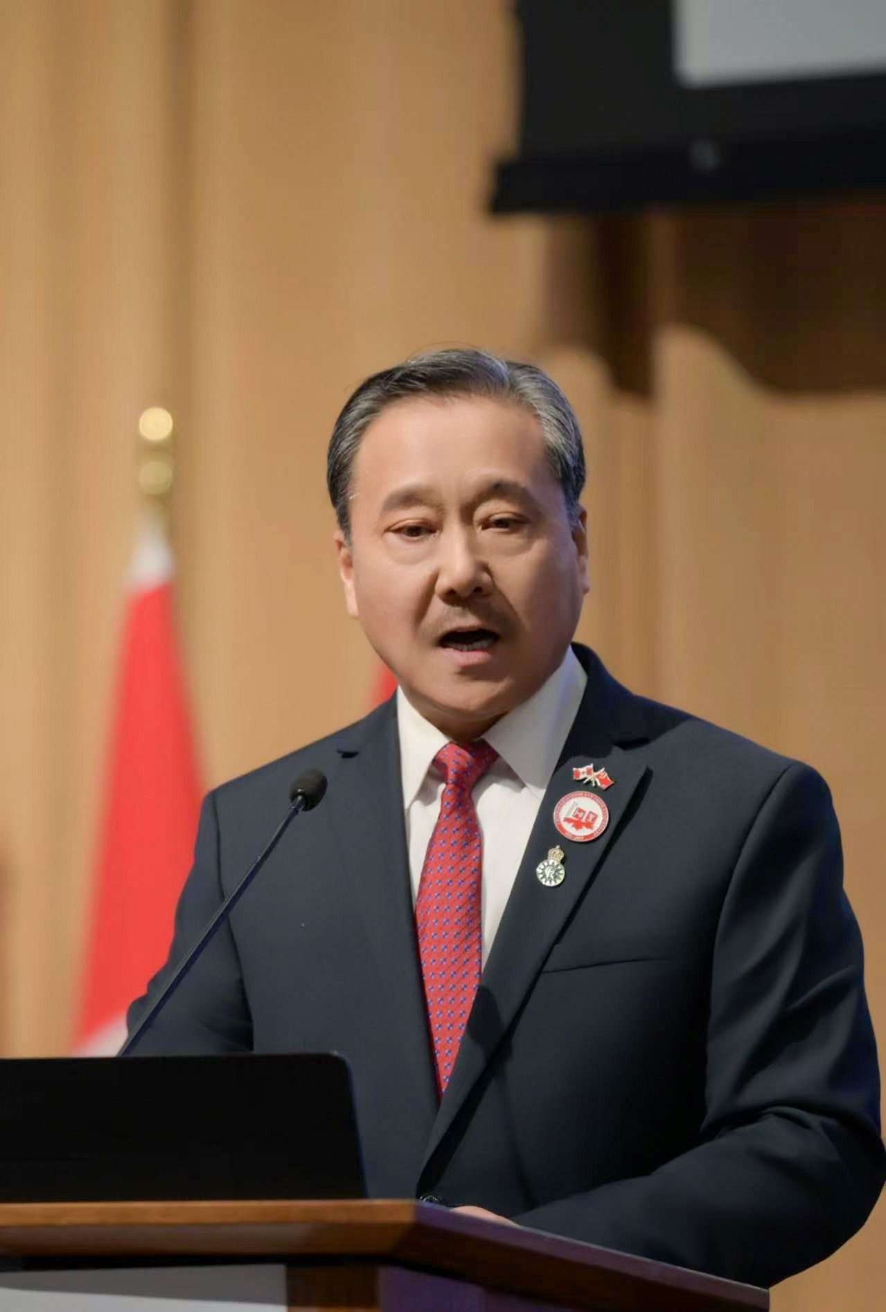(加拿大前参议员胡子修阁下在2025年《和平颂》演出现场发表致辞。他满怀深情地表达了对和平纪念的崇高敬意,盛赞演出不仅生动再现了历史记忆,更激发了海外华人对家国情怀的深切共鸣与坚定守望。)