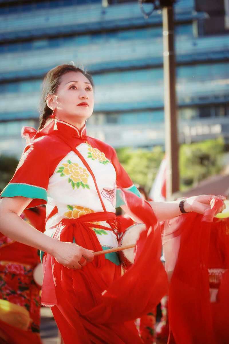 (图为沈谢元在多元文化活动中带领腰鼓队表演。作为多伦多首支腰鼓队的创办人,她长期参与社区公益,活跃在各类大型活动舞台,致力于弘扬中华传统文化,促进中加文化交流。)