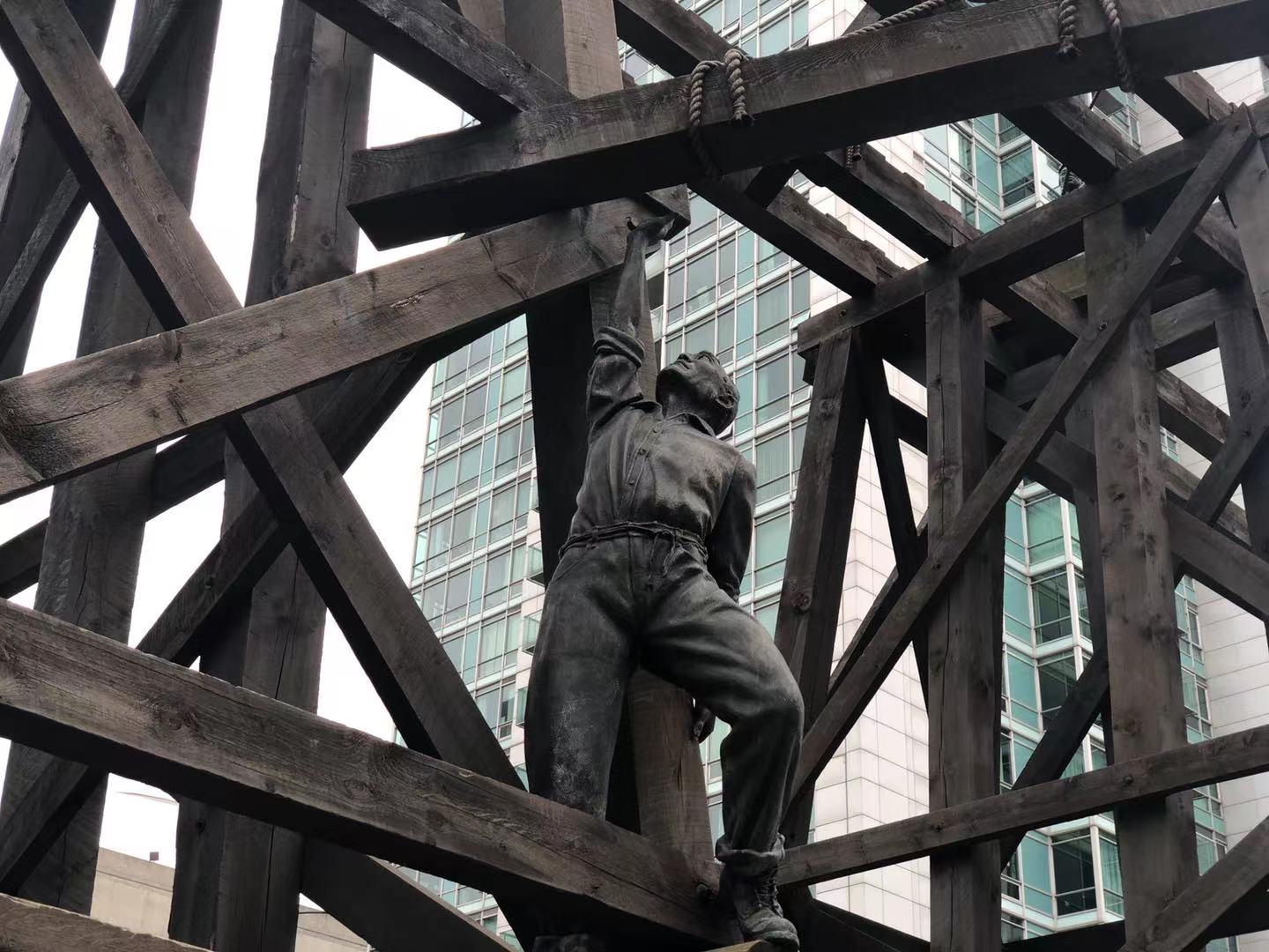 “铁路华工纪念碑”是一个巨大的建筑,它表现铁路华工铺设铁轨情景。纪念碑的特点是由艺术家Eldon Garnet和Francis LeBouthillier合作设计的真人大小的铜像,主要由木材和金属制成,它汇集了十九世纪铁路设计的元素以及中国传统牌坊的文化意义,纪念17000多名不知名的铁路华工为国家团结和开发加拿大西部资源所做出的巨大贡献和牺牲,其中有4,000多名华工在施工期间时丧生。他们的鲜血、汗水和眼泪不仅必须被铭记,而且永远不应被遗忘。 当卑斯省1871年加入联邦时,其中一个条件是在10年内修建一条铁路与加拿大东部相连。这条铁路横贯落基山脉,完成了加拿大地理和政治上的统一。