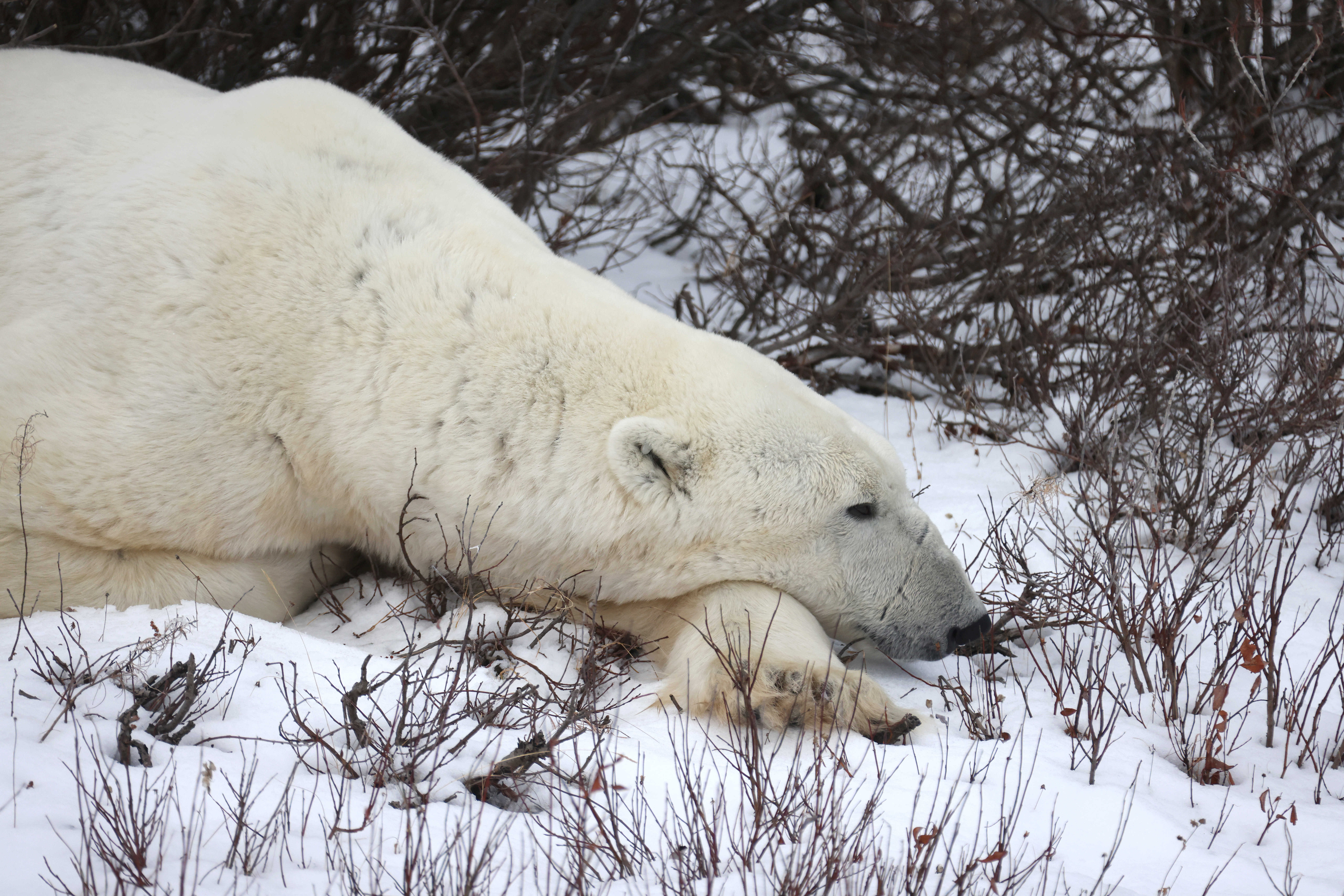 大部分北极熊在此度过大约4个月的“斋戒期”,靠消耗自身脂肪维生,或以苔原浆果、根茎补充少量营养,等待11月上中旬海湾结冰时可返回北极圈捕猎海豹等。怀孕的雌熊甚至需要“斋戒”8个月时间。