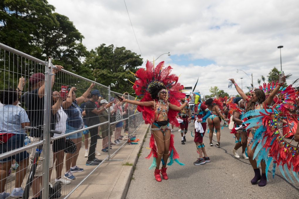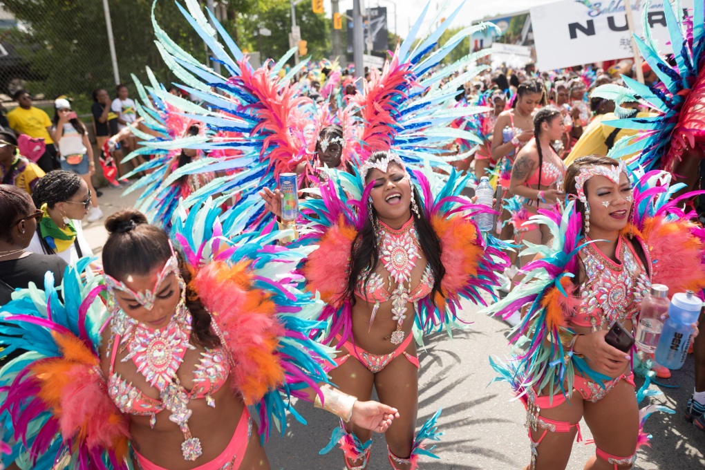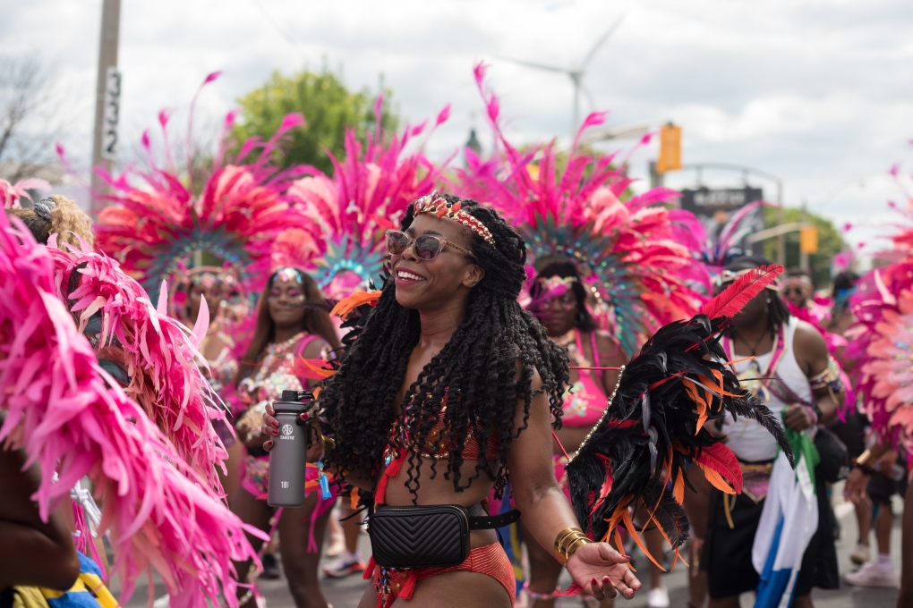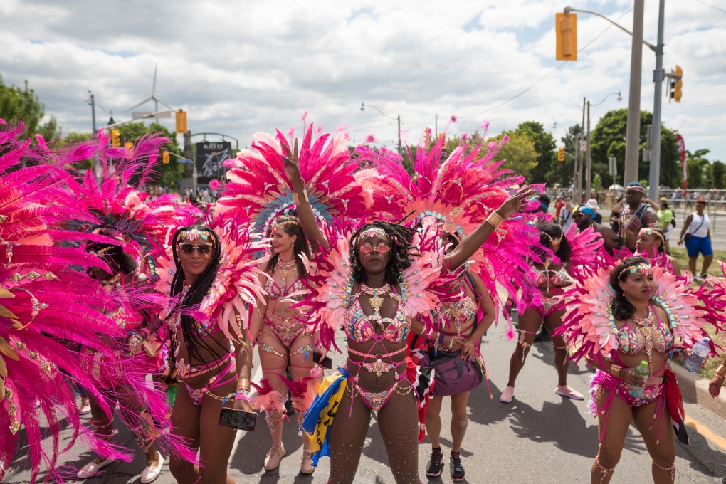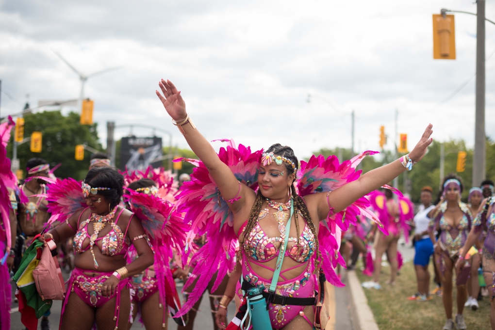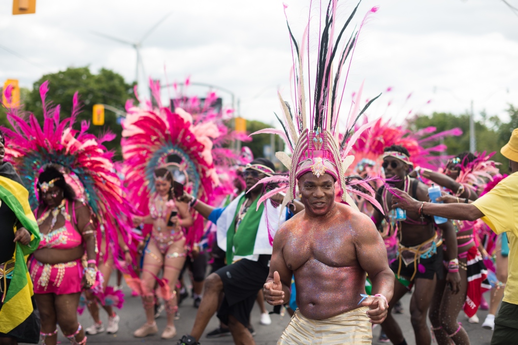 随着加勒比嘉年华盛大游行的回归,多伦多湖滨大道的街道上充斥着五颜六色的花车和服装。