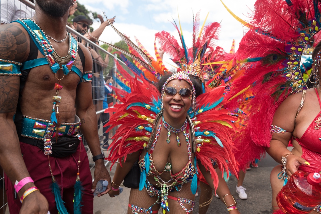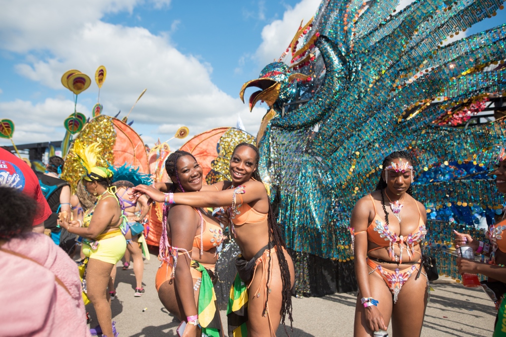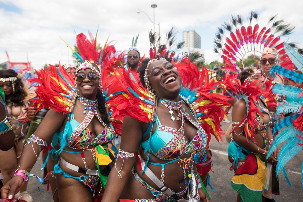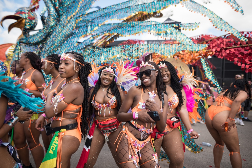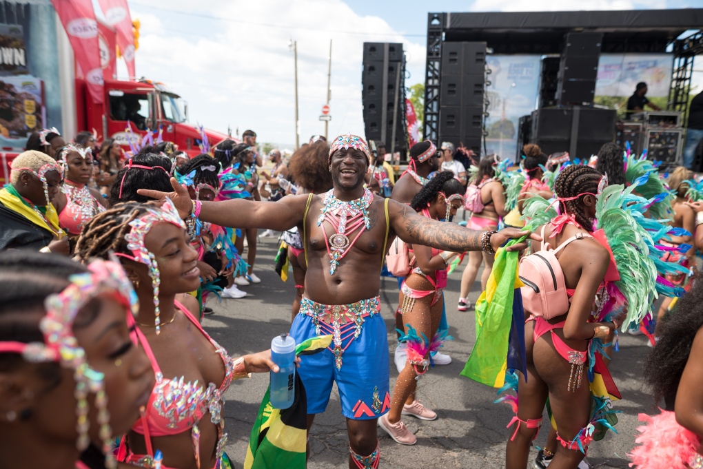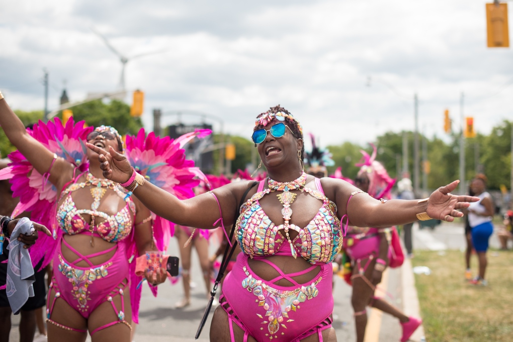 随着加勒比嘉年华盛大游行的回归,多伦多湖滨大道的街道上充斥着五颜六色的花车和服装。