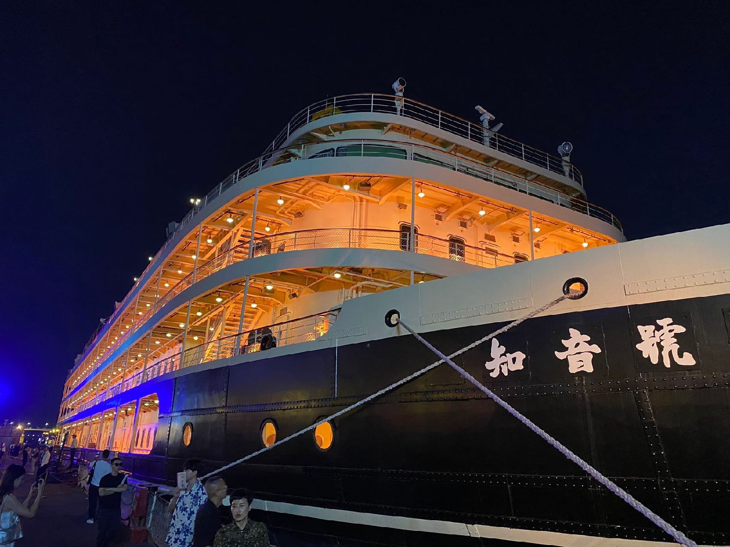 夜幕初降,位于武汉市汉口江滩的游轮“知音号”迎来络绎不绝的游客。码头上,长木椅、木质集装箱等老物件错落有致地摆放着,还原了100多年前的汉口场景。