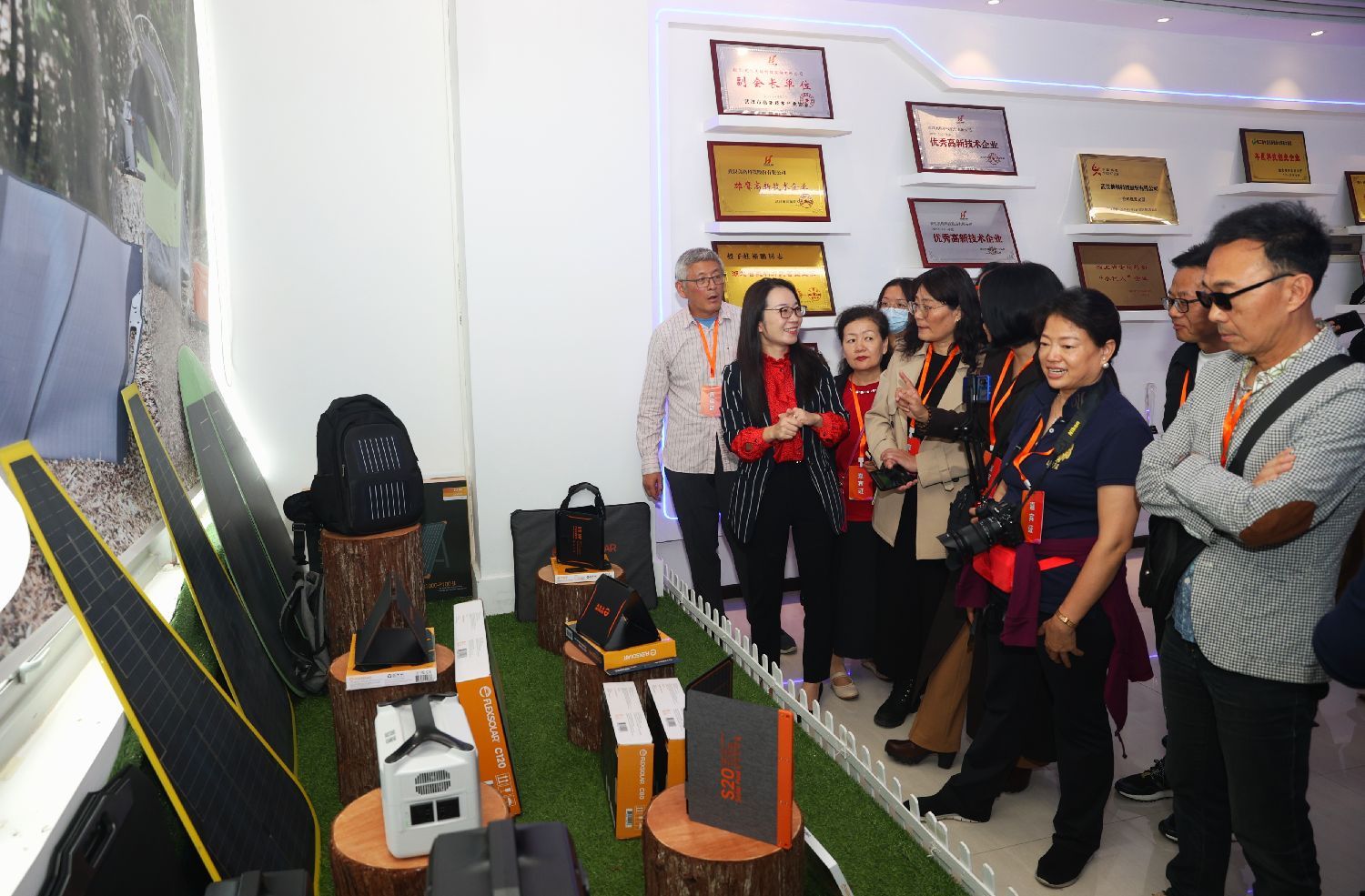 光谷空轨沿线聚集数百家行业龙头企业,串起“光芯屏端网”和生物医药两大产业集群。光伏背包、光伏遮阳棚、可折叠太阳板……走进美格科技,展厅陈列的光伏产品引起大家兴趣。