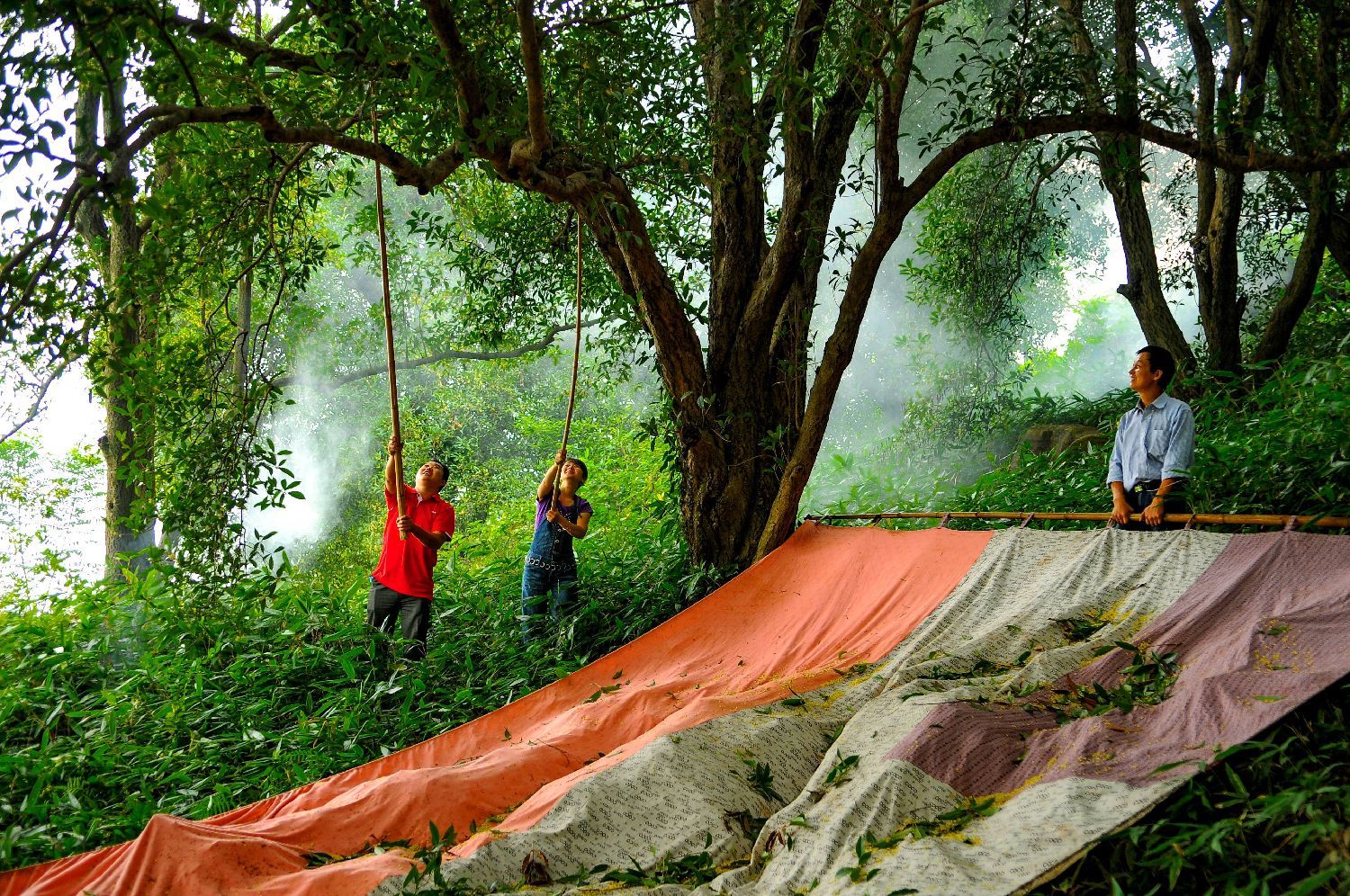 【工作人员在桂花源公园内采桂花。(资料图)咸宁市文化和旅游局供图】
