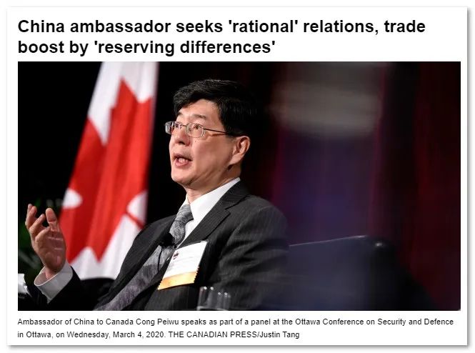 11月12日加拿大主流媒体报道了中国大使寻求“理性”关系,通过“保留分歧”促进贸易的文章。