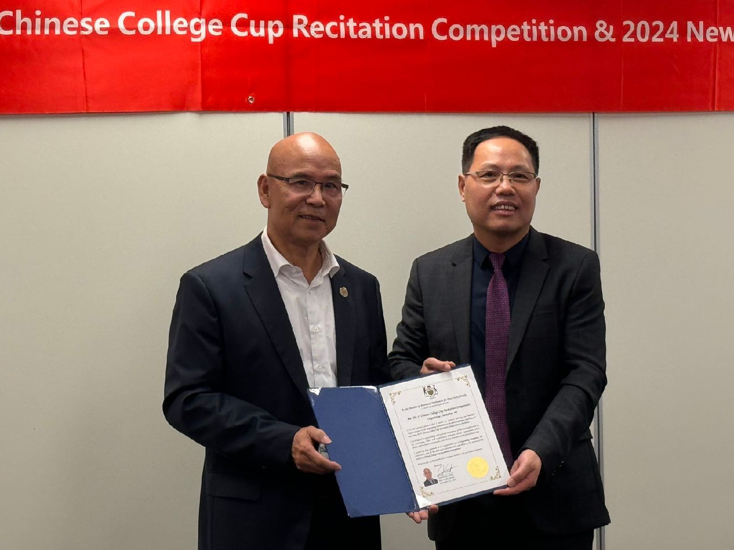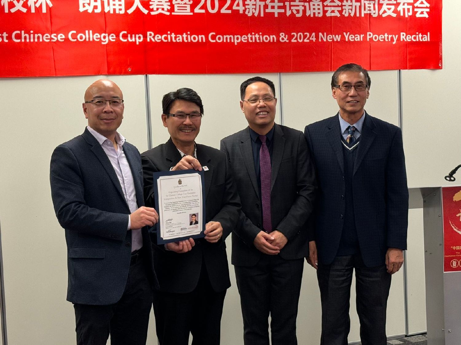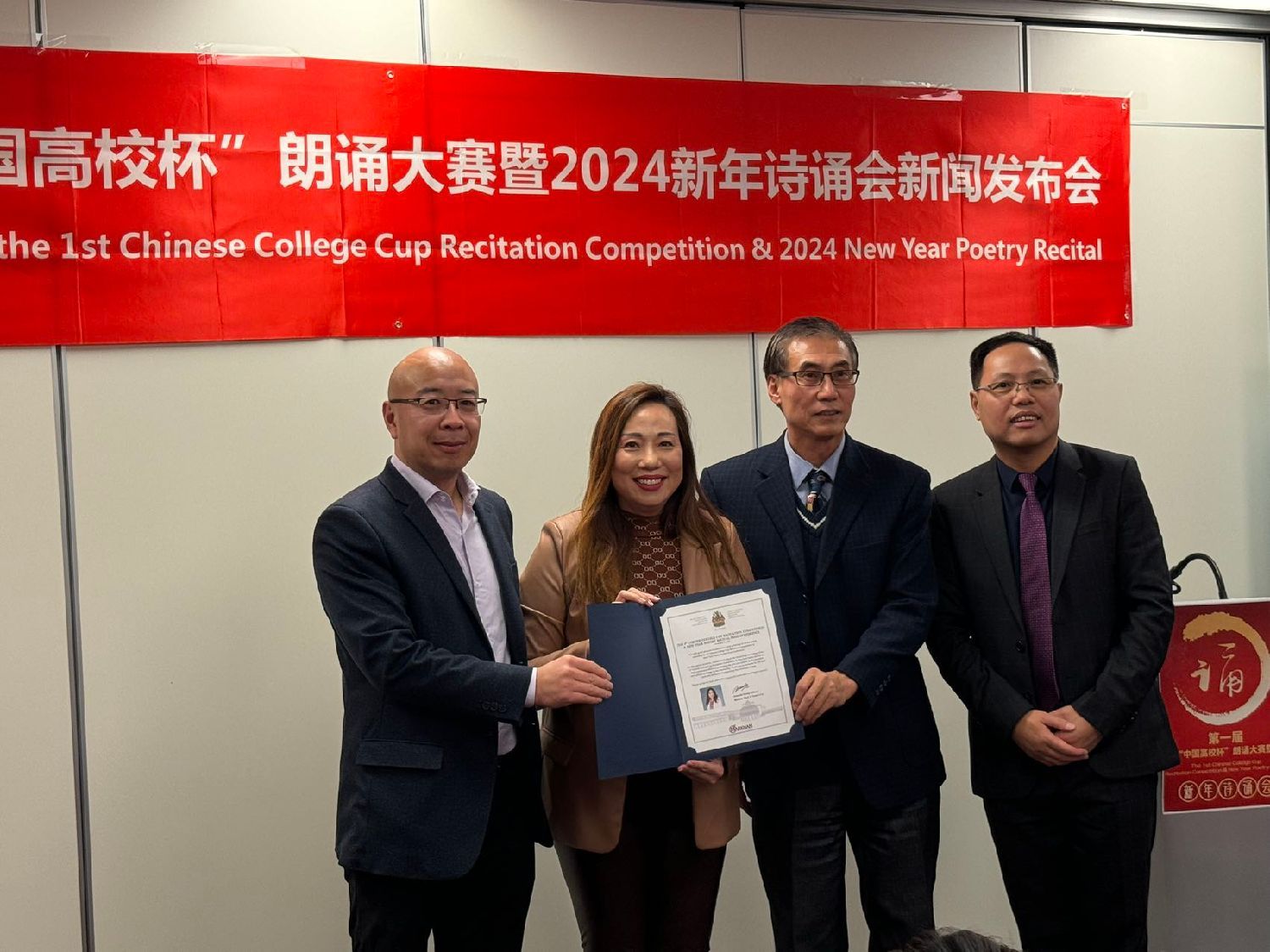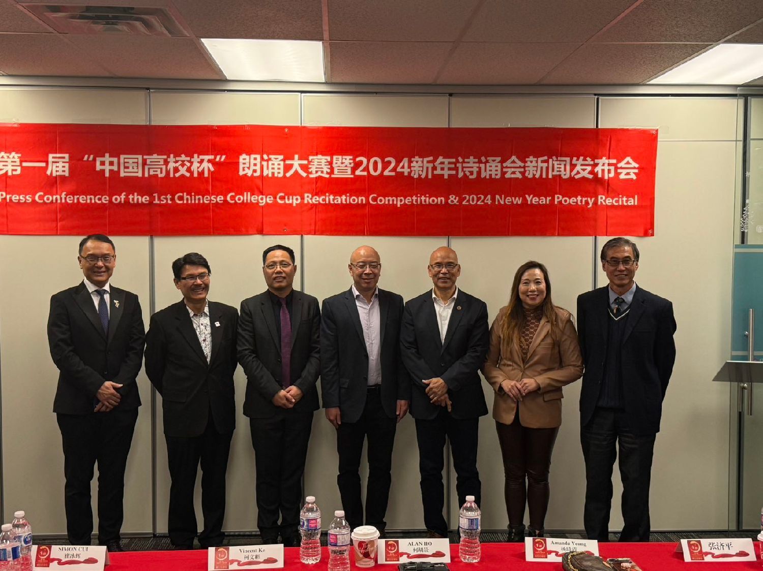 随后,出席新闻发布会的安省省议员柯文彬、区议员何胡景、万锦市议员杨绮清、列治文山市议员崔冰辉等嘉宾先后登台致辞并赠送贺信。他们都表示非常欣喜地看到“中国高校杯”朗诵大赛的举办,通过朗诵,不仅可以提升个人魅力,也丰富社区生活,让更多的人认识中华文化,还为加拿大的多元文化增添色彩。他们衷心感谢主办方的辛苦组织,为弘扬和传承中华文化所做的贡献。