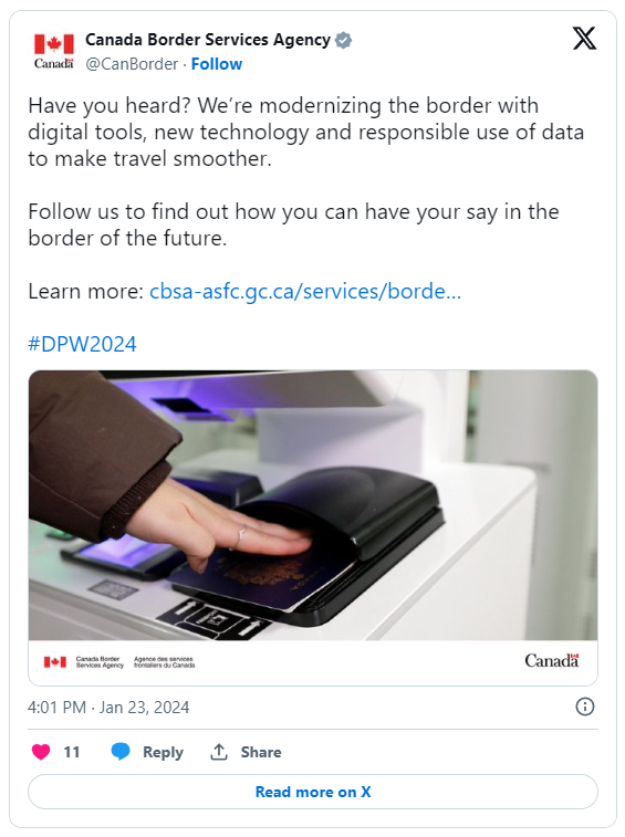 CBSA最近在X上发布的一篇帖子中宣布,该机构正在"通过数字工具实现边境服务现代化",以使旅客在过境时更加顺畅。