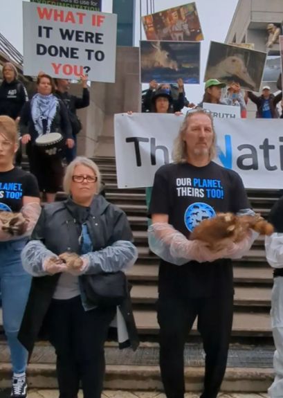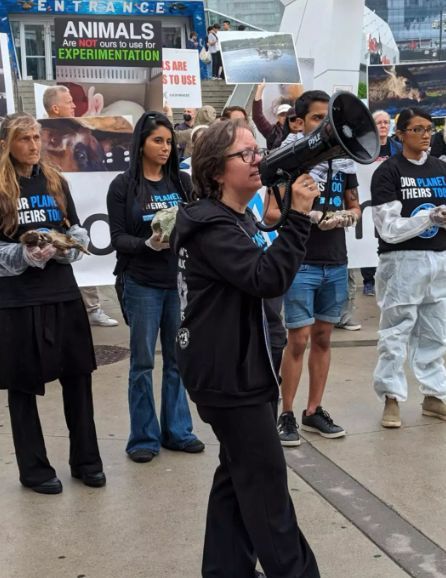 在示威活动中,组织者Jenny McQueen说:“今天我们为那些被视为商品的动物发声——现在是人们开始关注、研究动物制品替代品的时候了。”