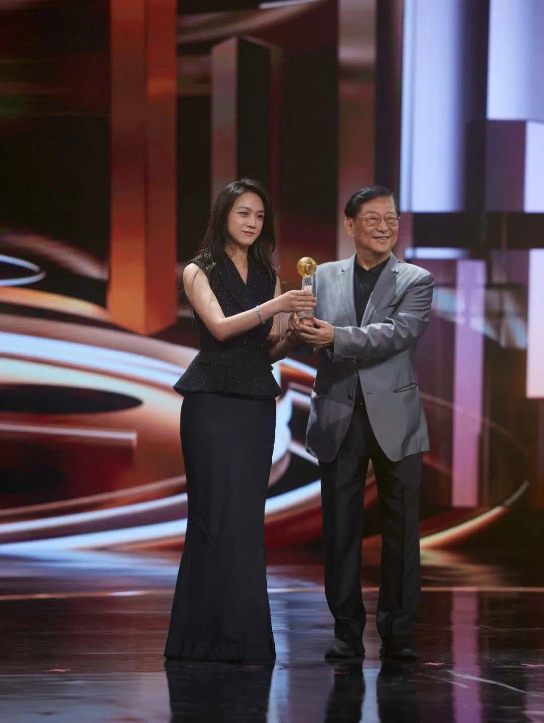 汤唯获影响世界华人大奖,香港电影工作者总会永远荣誉会长、香港电影导演会永远荣誉会长吴思远为汤唯颁奖。