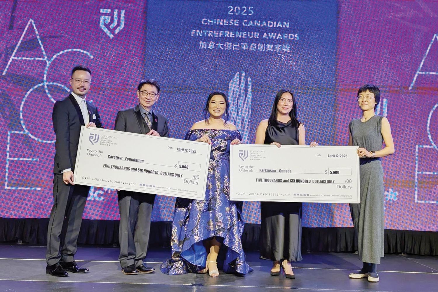 陳會長代表ACCE捐款予Parkinson Canada和Carefirst Foundation各5,600加元。