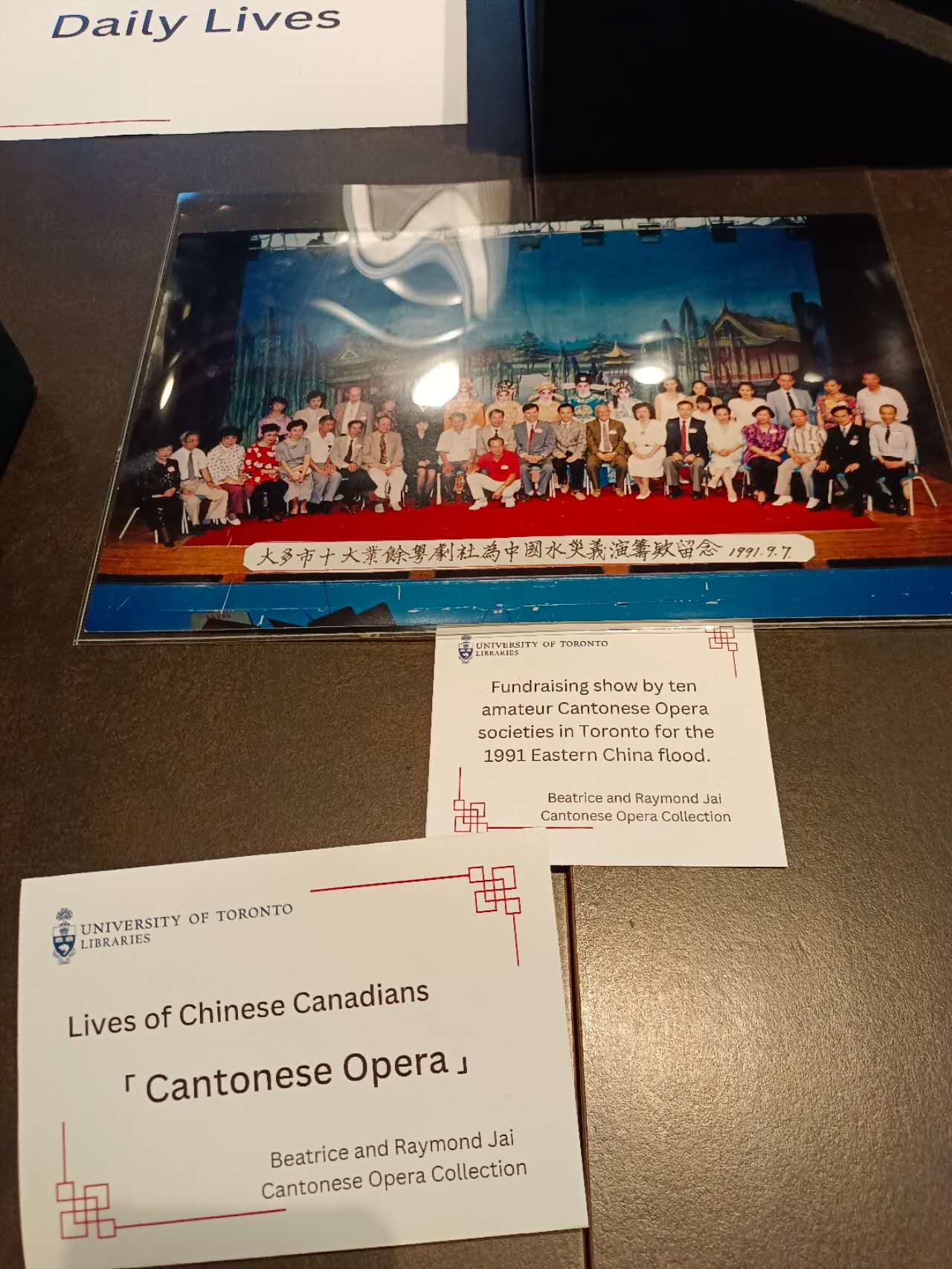 在“利铭泽典宬”的档案收藏中,特别值得关注的是Vivienne Poy、Bernard Luk、David Lai和Irene Chu的研究档案,以及大量与粤剧相关的资料收藏。粤剧作为华人加拿大社区历史的重要组成部分,其档案不仅记录了粤剧在加拿大的发展历程,也为研究华人社区的文化传承提供了宝贵的资料。在此次启动仪式的展品中,就包括了上述知名人士的私人信件、照片、文件、文物等,其内容十分广泛。吸引到记者目光的珍贵展品则有华人社区音像出版物、介绍华埠历史的印刷品、介绍粤剧社等华人团体的印刷物、反种族歧视宣传单页、赈灾活动照片等。参观者可以借此一窥早期多伦多华人的日常点滴及华人社区逐步发展壮大的历程。