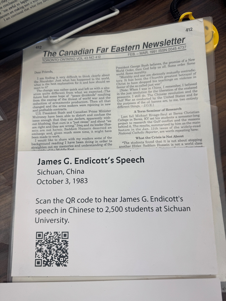 在那段风雨飘摇的岁月中,祖母玛丽·奥斯汀(Mary Austin Endicott)与整个家庭始终不离不弃、并肩同行。祖父的父亲——一位从伦敦移民、后来成为加拿大联合教会领袖的长者,起初也因儿子辞职、投身中国革命而深感震惊。但在晚年,他亲自登上多伦多的讲台,为中国、为和平、为自己的儿子骄傲发声。这篇演讲,也被珍藏于此次捐赠的史料之中。